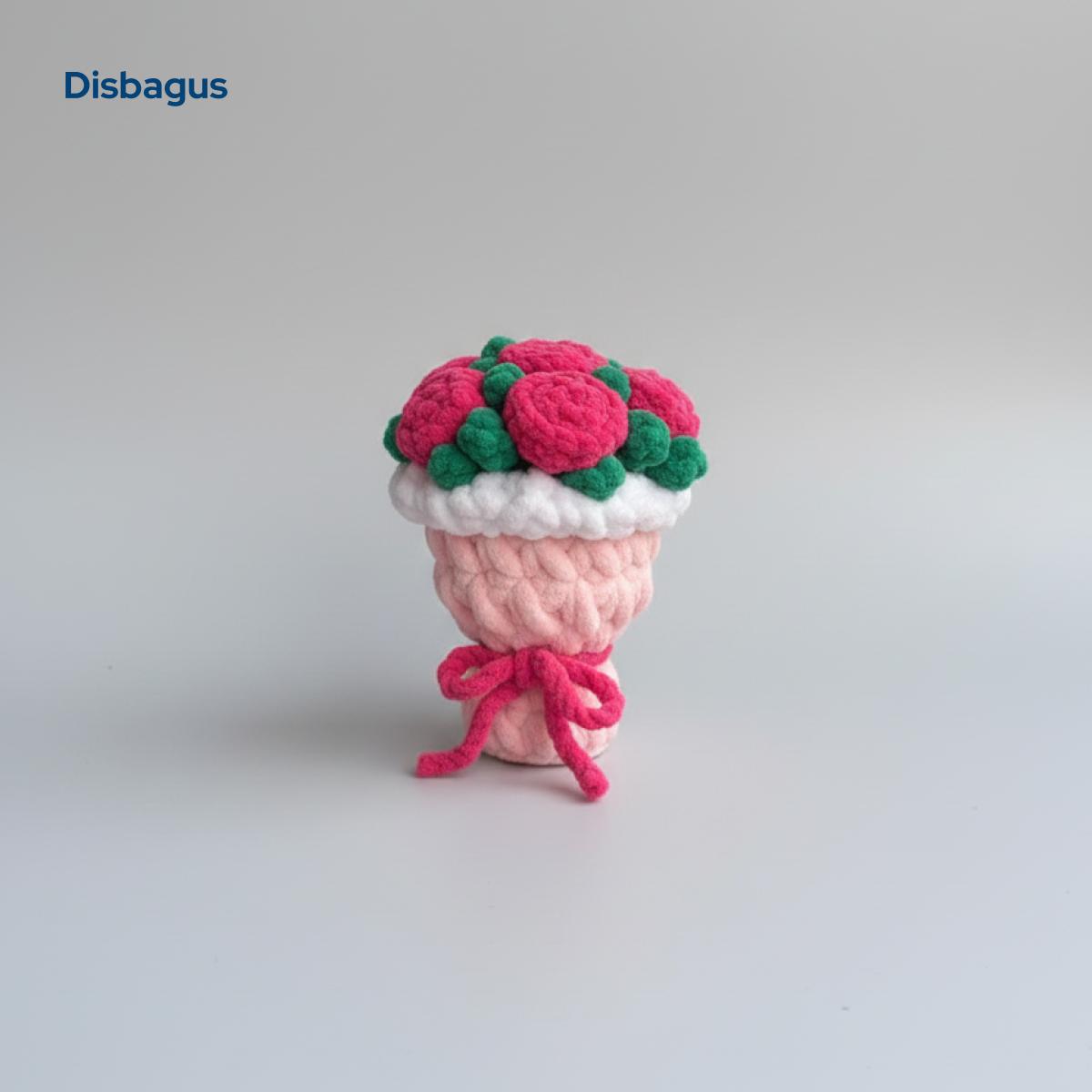 A cute mini pink crochet rose bouquet made with chunky yarn — soft, everlasting, and perfect for décor or gifting.