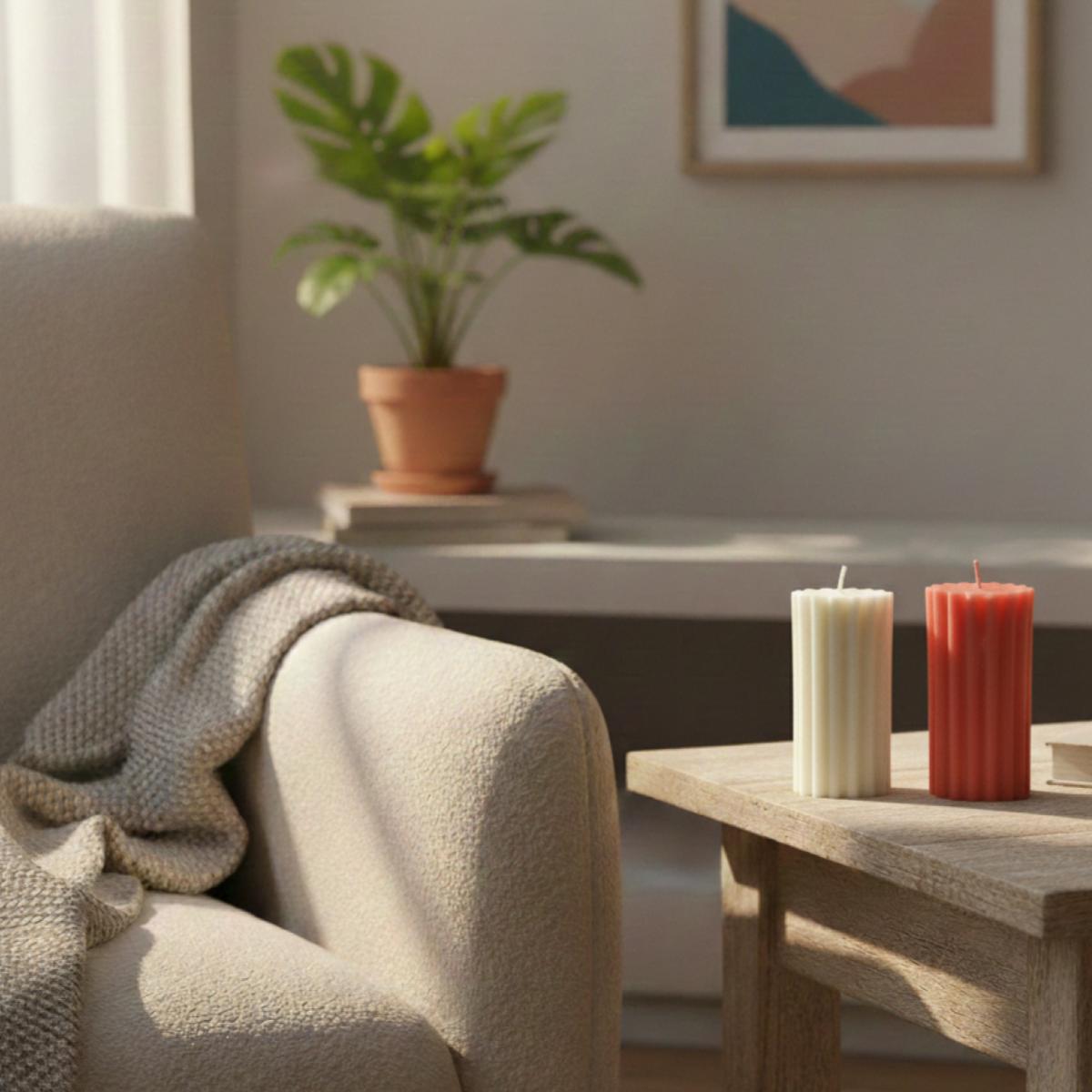 This striped medium cylindrical candle features a modern ribbed design that adds charm to any space. Handcrafted using natural soy wax, it offers a clean, even burn and enhances interiors with its minimal yet stylish look. Ideal for everyday décor, festive setups, or thoughtful gifting, this candle blends aesthetics with functionality.