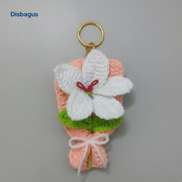 A delicate handmade crochet white flower keychain — a minimal, elegant accessory for everyday use or gifting.